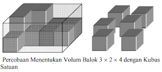 Melalui proses percobaan dengan mengisi kubus satuan ke balok dalam berbagai ukuran, secara umum volum balok dengan panjang p, lebar l, dan tinggi t dapat dinyatakan sebagai